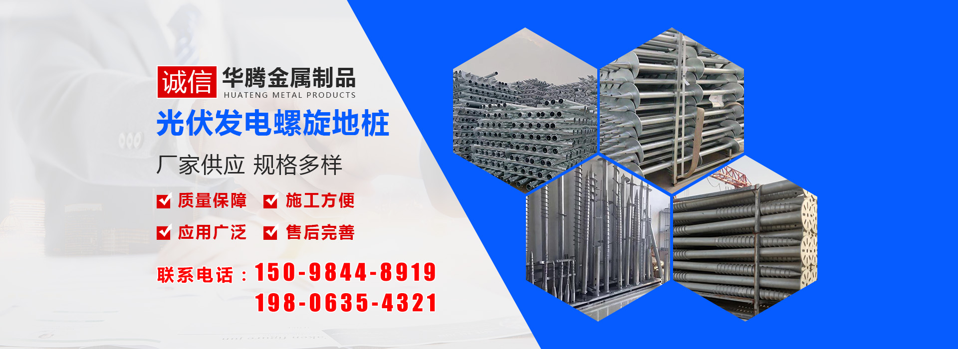 华腾金属制品 (山东) 有限公司是螺旋地桩定制销售公司,主营光伏螺旋地桩、光伏地桩等产品所生产的光伏螺旋地桩品种规格齐全,并可根据客户的需求、图纸、样品研发产品。多年来我们以优良的服务及高精端产品赢得了国内外广大客商的赞誉及肯定,光伏螺旋地桩等产品广泛应用于光伏太阳能电站桩基、房屋建筑桩基、...…